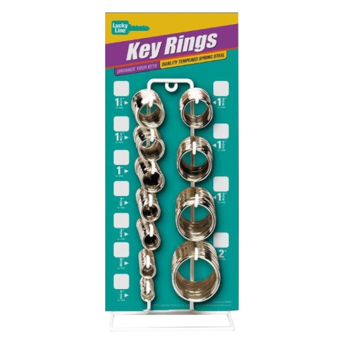 - Sturdy counter display holds 365 key rings in 11 different sizes, from 1/2" to 2" in diameter